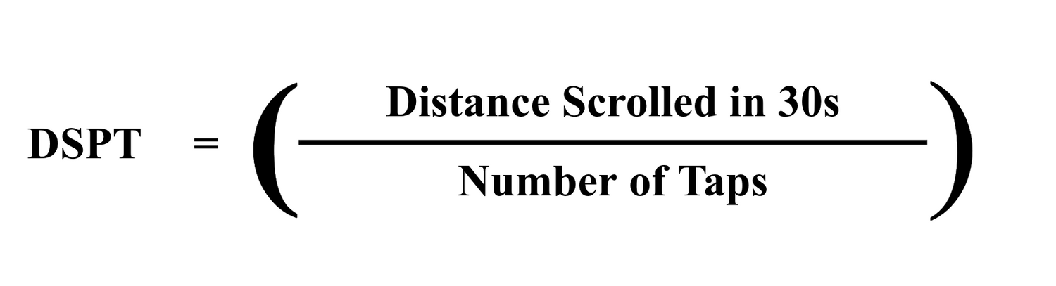 I worked with some creative technologists in the studio to determine that we can access the number of taps (or scroll gestures) globally. So, as a final effort to approximate a scroll distance, I created a multiplier that approximates a distance scrolled per tap (DSPT). To get this number on the fly, I created a fake social media platform called Eggstagram, and asked 20 people to scroll it as they would Instagram.